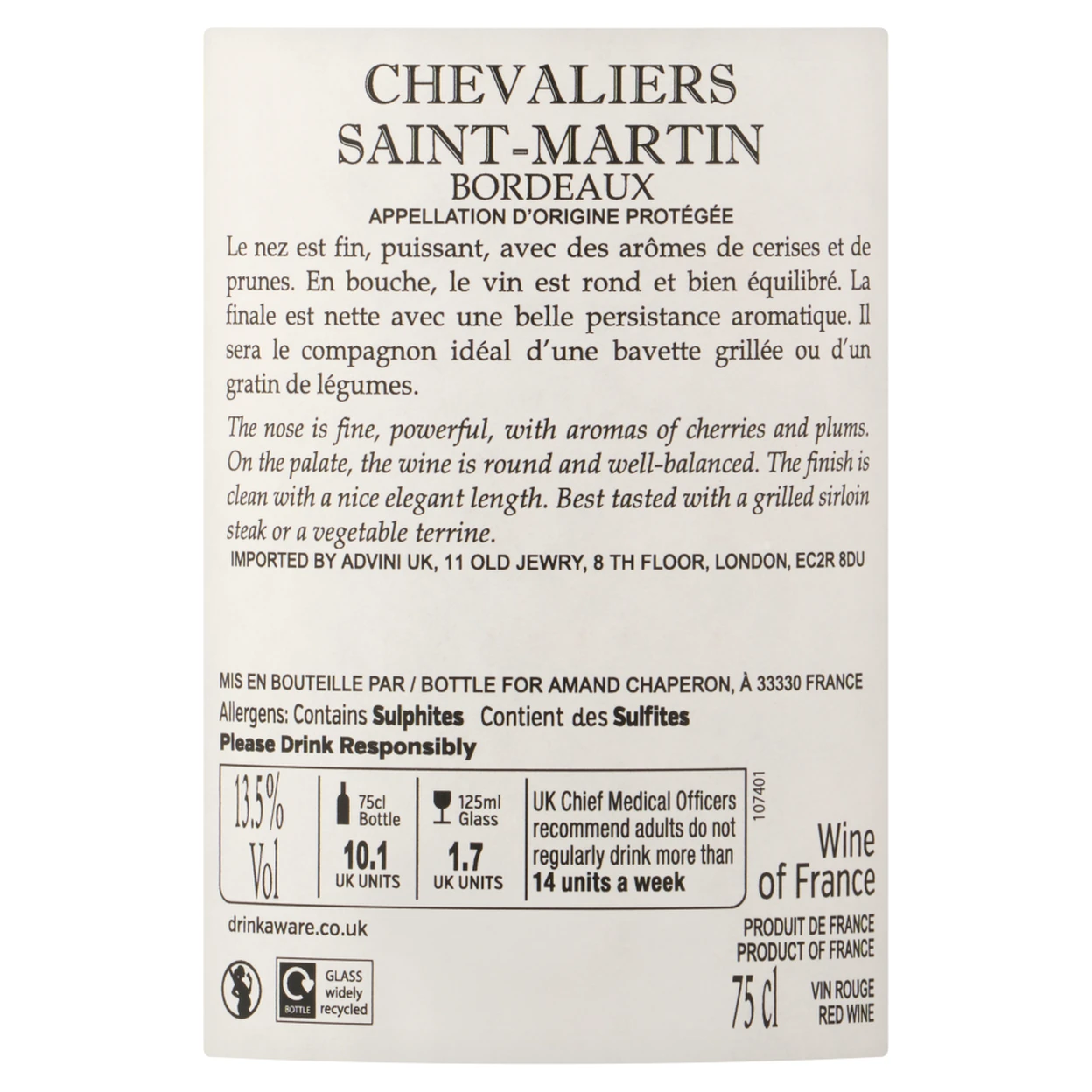 Chevaliers Saint-Martin Bordeaux 75cl