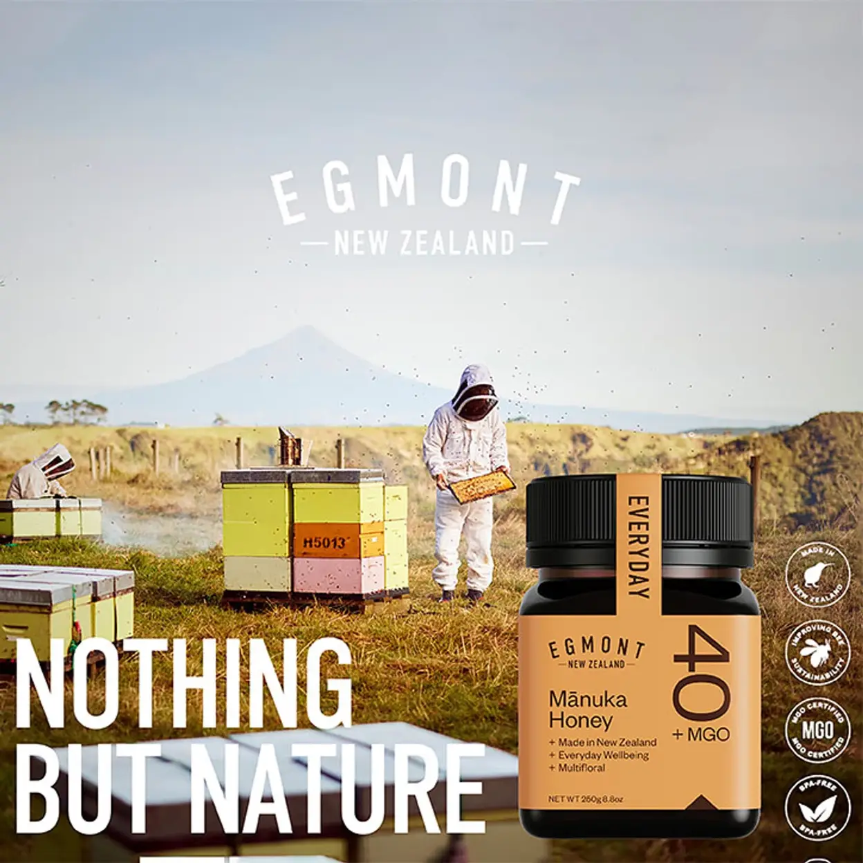 EGMONT HONEY New Zealand Manuka Honey MGO 40+ Multifloral Raw Honey Immune Support Flavour - 250g
