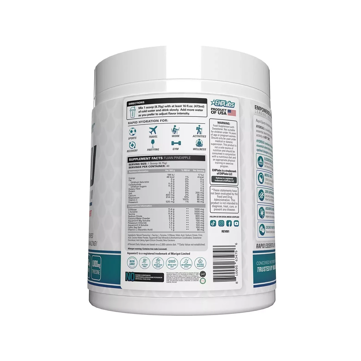 EHPlabs Hydreau Hydration Powder Fijian Pineapple Flavour - 40 Servings