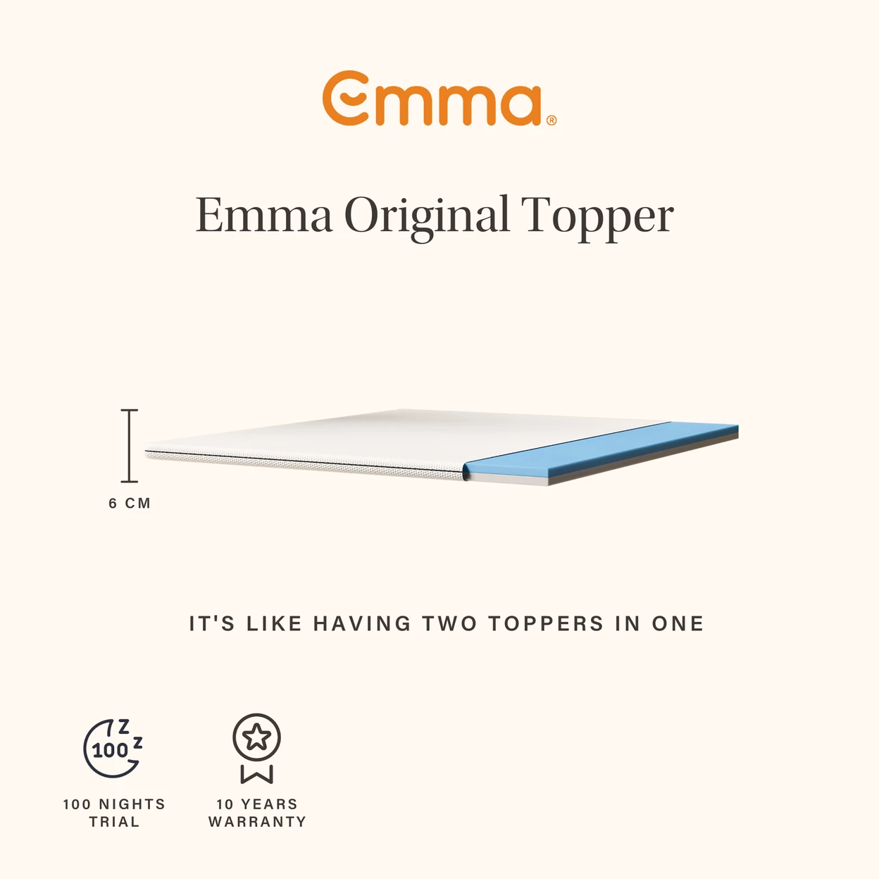 Manufacturer: Emma Sleep. The Emma Original Mattress Topper is designed as part of Emma’s UK topper range and produced using rigorously tested foams and textiles. It is normally supplied with a long-term manufacturer’s guarantee covering defects in materials and workmanship, in line with Emma’s quality standards.