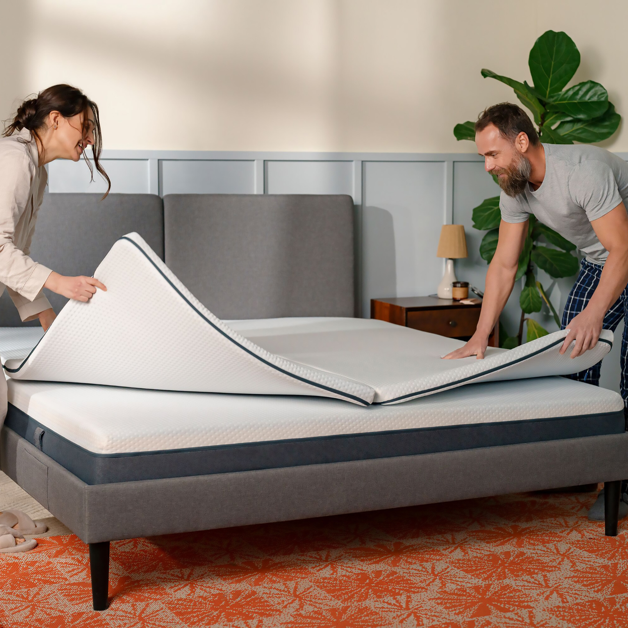 1.       Unpack the topper and place it on a flat, stable mattress, ensuring it lies evenly across the bed surface.