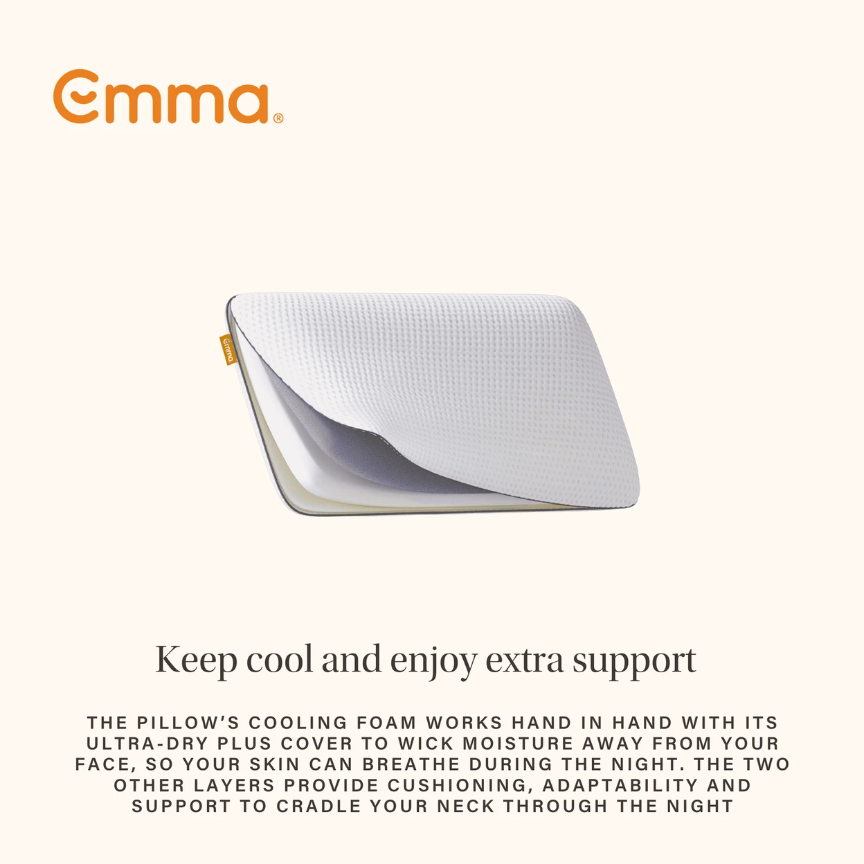 Manufacturer: Emma Sleep. The Emma Original Foam Pillow is part of Emma’s core pillow range and is produced with high-quality foams and textiles. It is typically supplied with a manufacturer’s warranty covering defects in materials and workmanship (subject to local retailer terms and conditions).