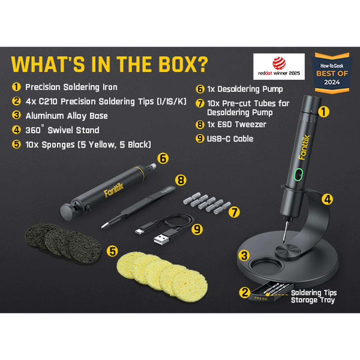 Fanttik T1 Max Soldering Iron Kit, Cordless Soldering Iron, 7 Seconds Fast Heating(390°F-840℉), Auto Sleep, 4 Precision Soldering Tips(C210), 360° Swivel Stand, Soldering Iron for Precision Repair