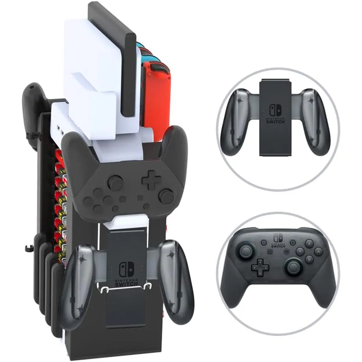 • Expanded Storage Solution: Beyond charging, it features dedicated storage for up to 10 physical game cases, 5 loose game cartridges, and even includes a built-in headset stand.