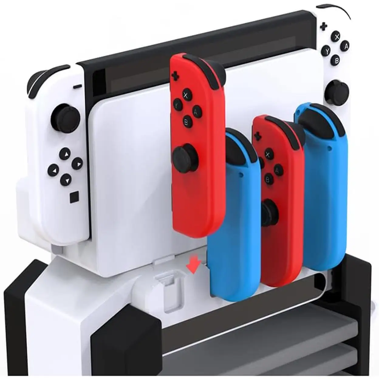 • Comprehensive Charging Hub: Simultaneously charges up to 4 Joy-Cons and 2 Pro Controllers with convenient drop-and-charge functionality and LED indicators.