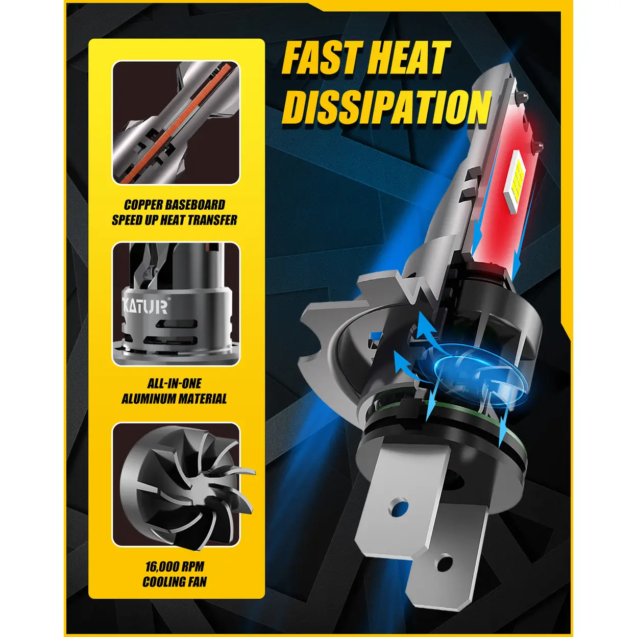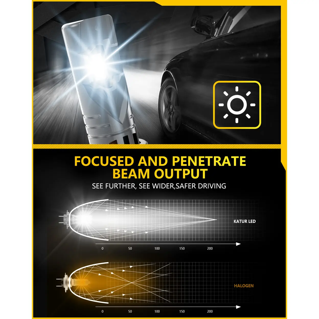 KATUR H7 LED Headlight Bulbs, 100W 30000LM 6000K Xenon White H7 Headlight Bulb 1:1 Mini Size Plug and Play H7 LED Bulb, Pack of 2