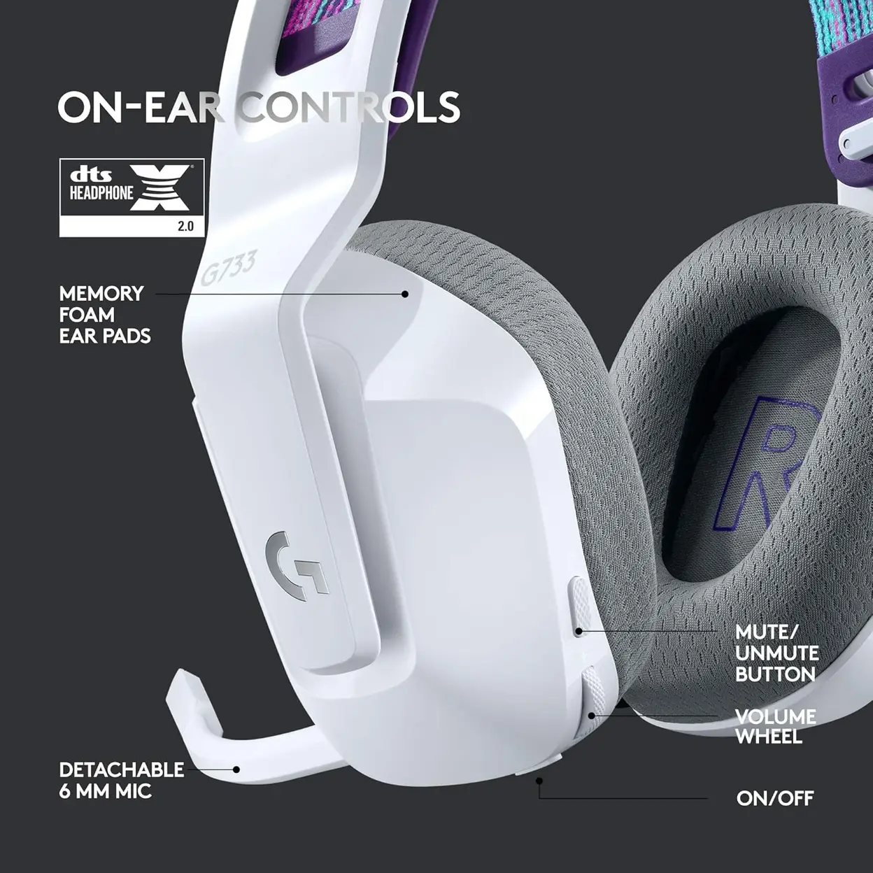 Logitech G G733 Lightspeed Wireless Gaming Headset - White