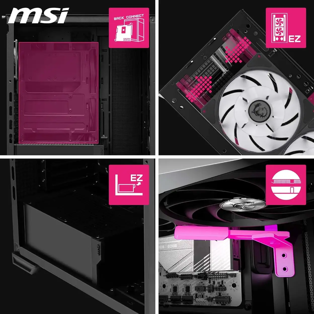 • Cable Management System— Features a dedicated cable routing system to keep your build tidy and improve airflow, enhancing overall system aesthetics and performance.