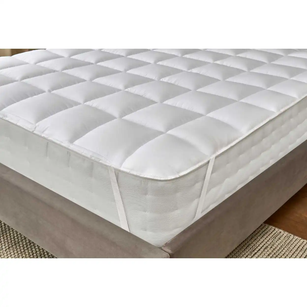 What makes this mattress topper special? The box stitch creates outstanding filling placement, giving it superior support to other patterns, while a bound edge ensures the filling stays put even when machine washed.