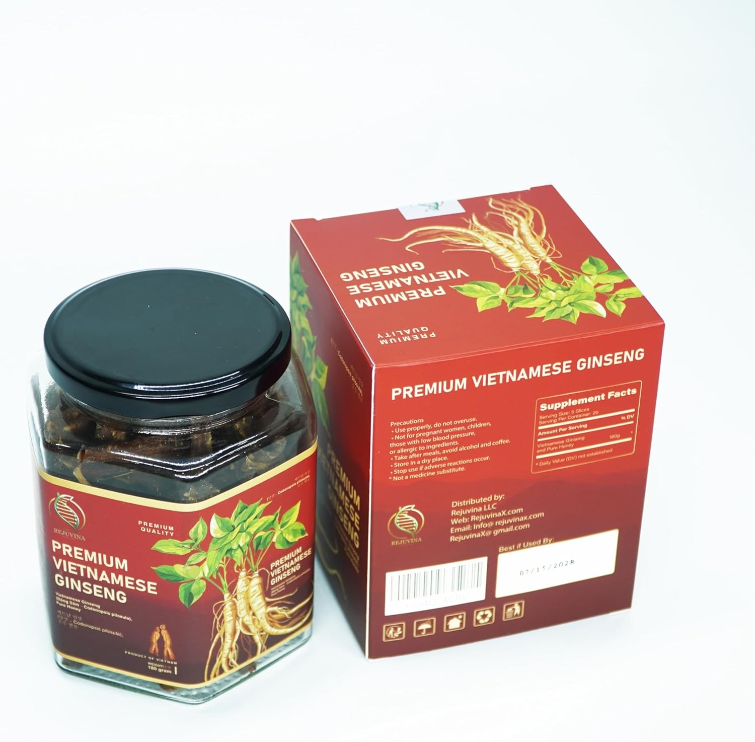 Premium Vietnamese Ginseng Slices with Honey – Energy & Performance Support, Immune Health & Focus – No Capsules, No Bitter Powder, only Soft Chew Ginseng with Honey, 100% Natural, 180g Jar