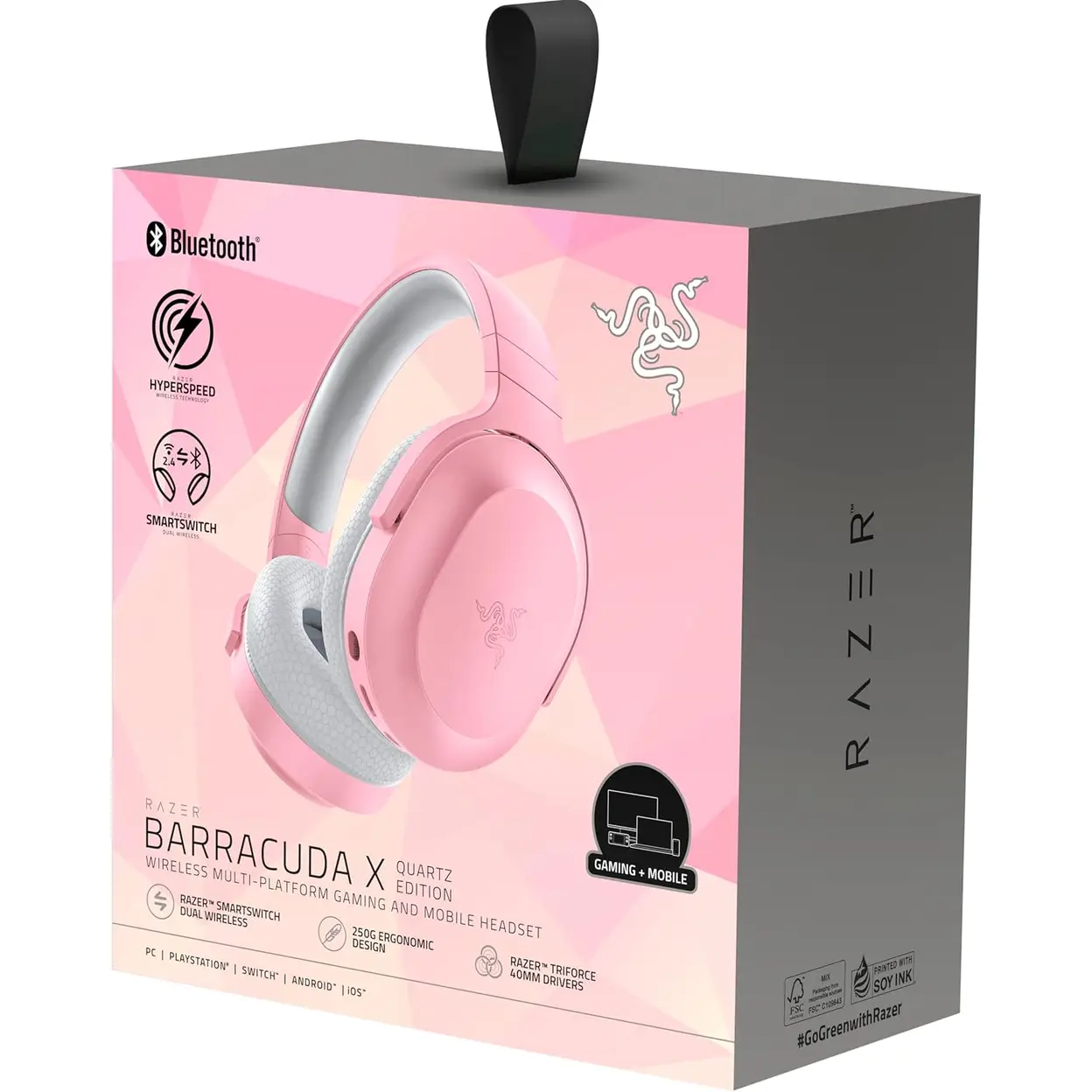 Dual Wireless Connectivity: The Razer Barracuda X Quartz Pink uses Razer SmartSwitch Dual Wireless technology, allowing effortless switching between 2.4 GHz and Bluetooth 5.2 for versatile connectivity.