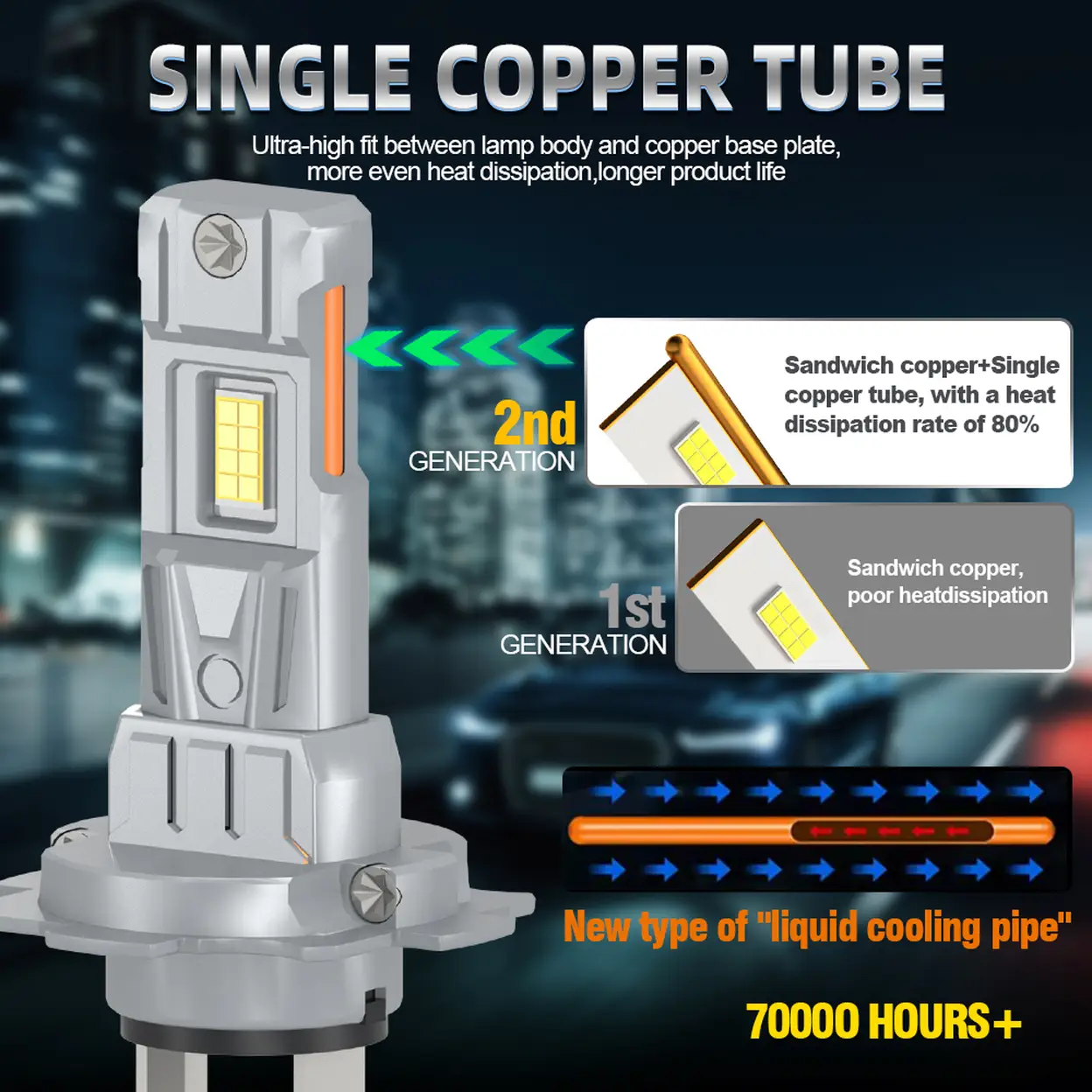 Roadsun LED H7 Headlight Bulbs, H7 Fog Light, 800% Super Brighter, No Need Adapters, 6000K Cool White, Real 1:1 Mini Size, Plug and Play, Powersports Accessory Fog Lights