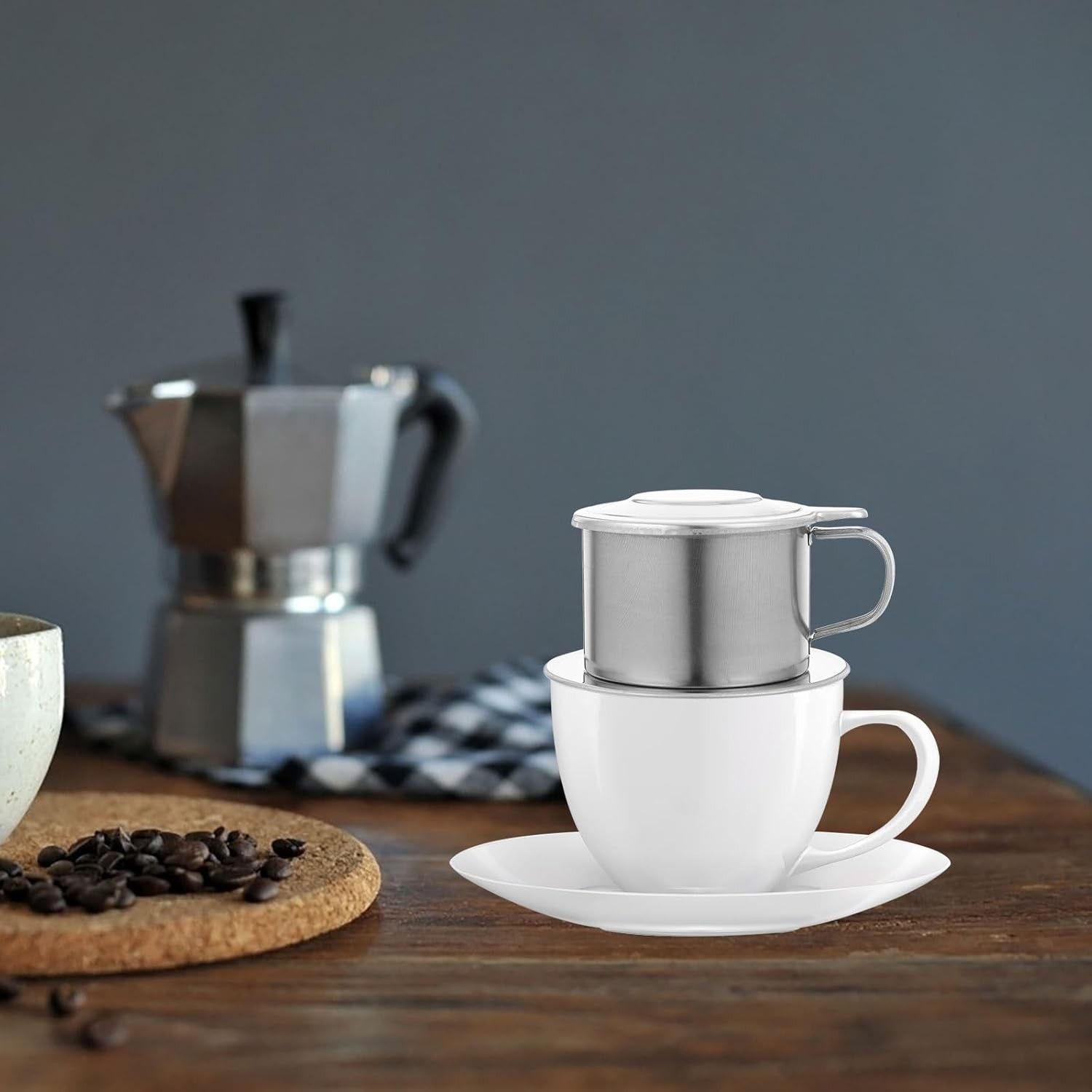 SAFIGLE Vietnamese Coffee Filter Stainless Steel Single Cup Coffee Maker 200ml Portable Reusable Drip Brewer with Handle for Home Office Use