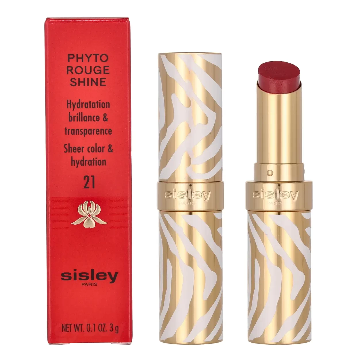 Fall under the charm of Sisley's Blissful Lotus Collection, inspired by the strength and resilience of the Lotus flower. Phyto-Rouge Shine is a new-generation lip care shine lipstick: the perfect combination of the shine of a gloss, the comfort of a balm and the melt-in colour of a lipstick. Thanks to the Hydrobooster complex, composed of Hyaluronic Acid and Konjac Glucomannan microspheres, lips are immediately plumped and smoother. With repeated application, lips are nourished, soft and protected from external aggressions. The rich, melt-in and addictive texture provides absolute comfort and an ultra-shiny effect. Its sheer formula dresses lips with an intense shine and natural radiance. The wash of colour intensifies with additional coats for buildable coverage that can be adapted as desired. Shade 21 Sheer Rosewood offers a delicate, natural rosewood hue perfect for everyday wear. It comes in a palette of radiant and easy-to-wear shades, from nude beige to daring cranberry and in two finishes: shiny and iridescent. Its jewellery-like casing is adorned with white and gold zebra stripes. It is available in a refillable format.