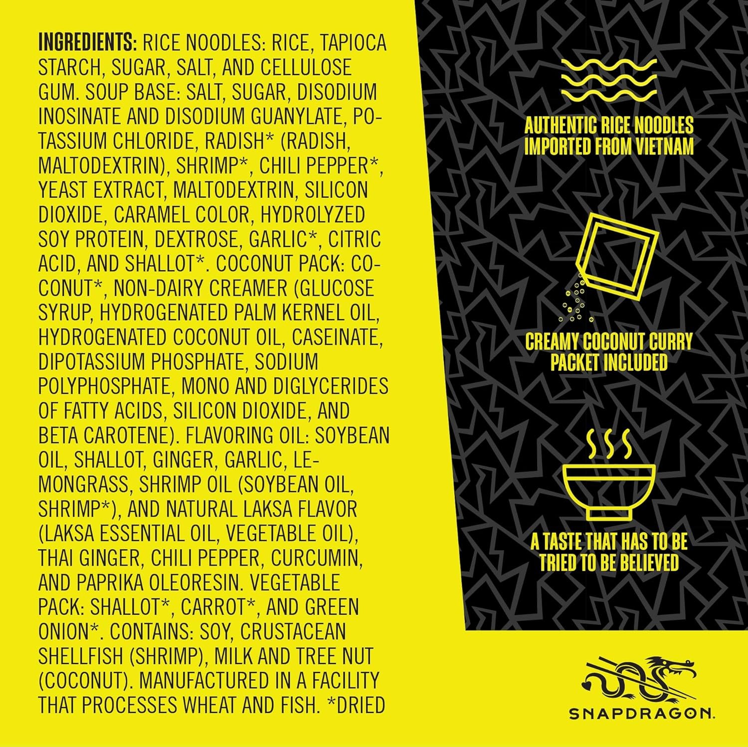 Snapdragon Laksa Curry Instant Noodle Bowls | Coconut Curry Flavor with Rice Noodles | Gluten-Free | No MSG Added | 2.1 oz (6 Pack)