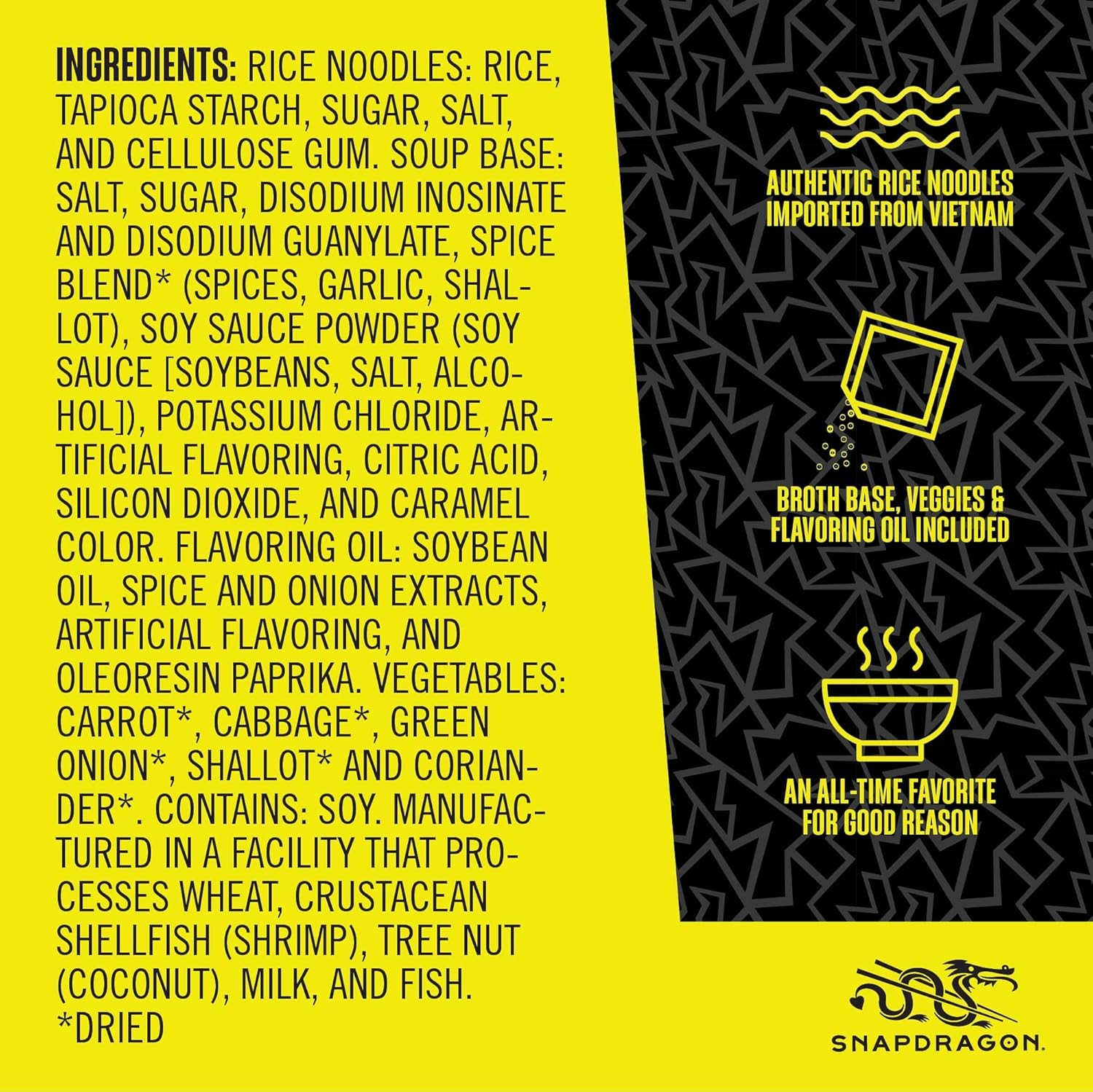 Snapdragon Pho Instant Noodle Bowls | Pho Flavor Broth with Rice Noodles | No Artificial Flavors | No MSG Added | 2.3 oz (9 Pack)