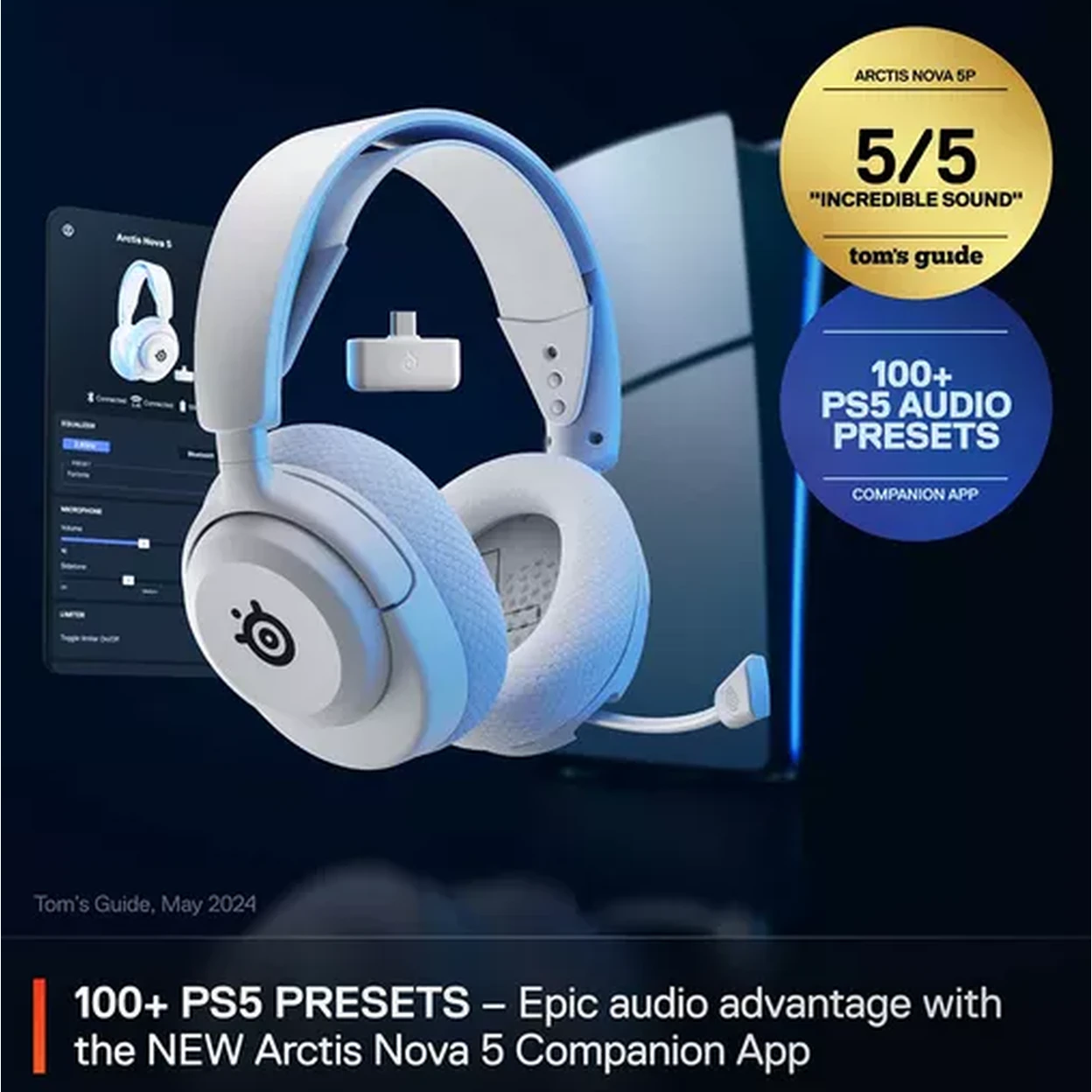 A versatile wireless gaming headset built for multi-platform players, the SteelSeries Arctis Nova 5P delivers immersive 7.1 surround sound, 100+ in-game audio presets and crystal-clear voice quality through the ClearCast 2.X microphone. With fast switching between 2.4 GHz and Bluetooth, long 60-hour battery life and ultra-light comfort, it’s designed to help you stay locked in and ready for every victory—whether you're on PC, PlayStation, Switch or mobile.