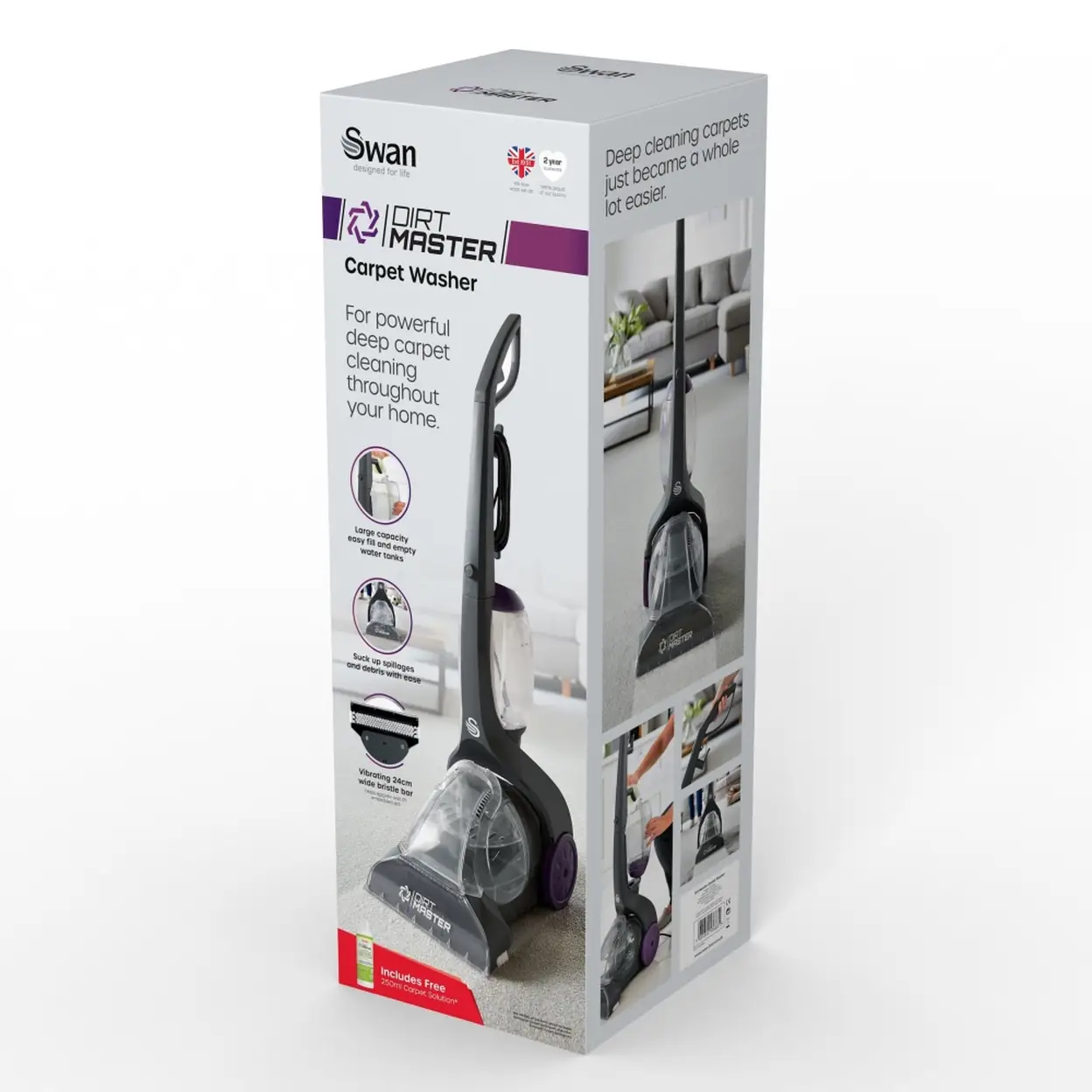 The Swan Dirtmaster Lightweight Wet Carpet Cleaner for Pet Odours - Black, SC17310N is a simple, lightweight solution for lifting stains and spills from carpets, rugs and upholstery. Its rotating brush bar agitates fibres to loosen dirt, while the wet cleaning action helps refresh fabrics and neutralise lingering pet odours, making it ideal for pet-friendly homes.