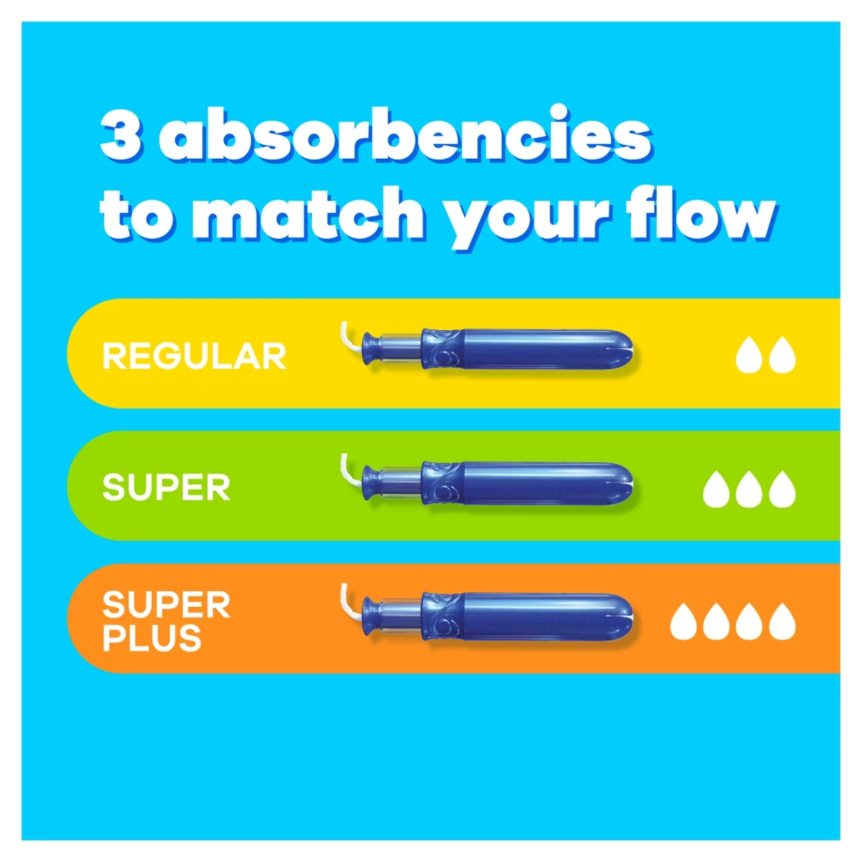 3-in-1 Protection: Combines leak protection, comfort and smooth insertion in one advanced tampon design.