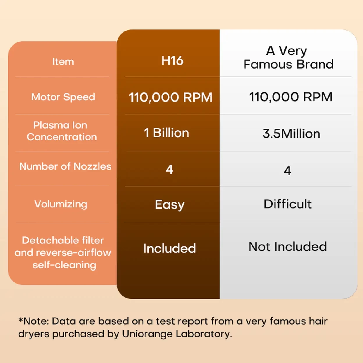 Uniorange H16 Portable Foldable High-Speed Hair Dryer, 110K Motor Speed, 1 Billion+ Ion Shield Technology, Includes 4 Styling Nozzles, Gold