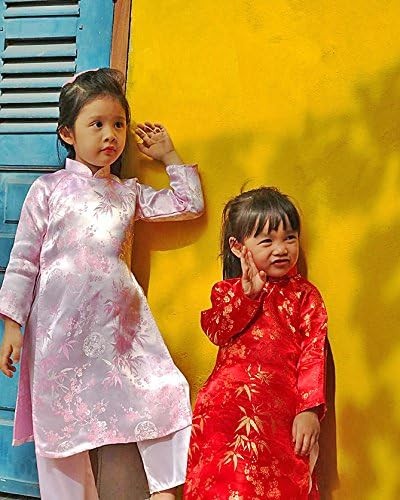 Vietnamese Traditional Dress for Children - Red Silk Dress with White Pants/Size#2 - Similar to Size 1T US