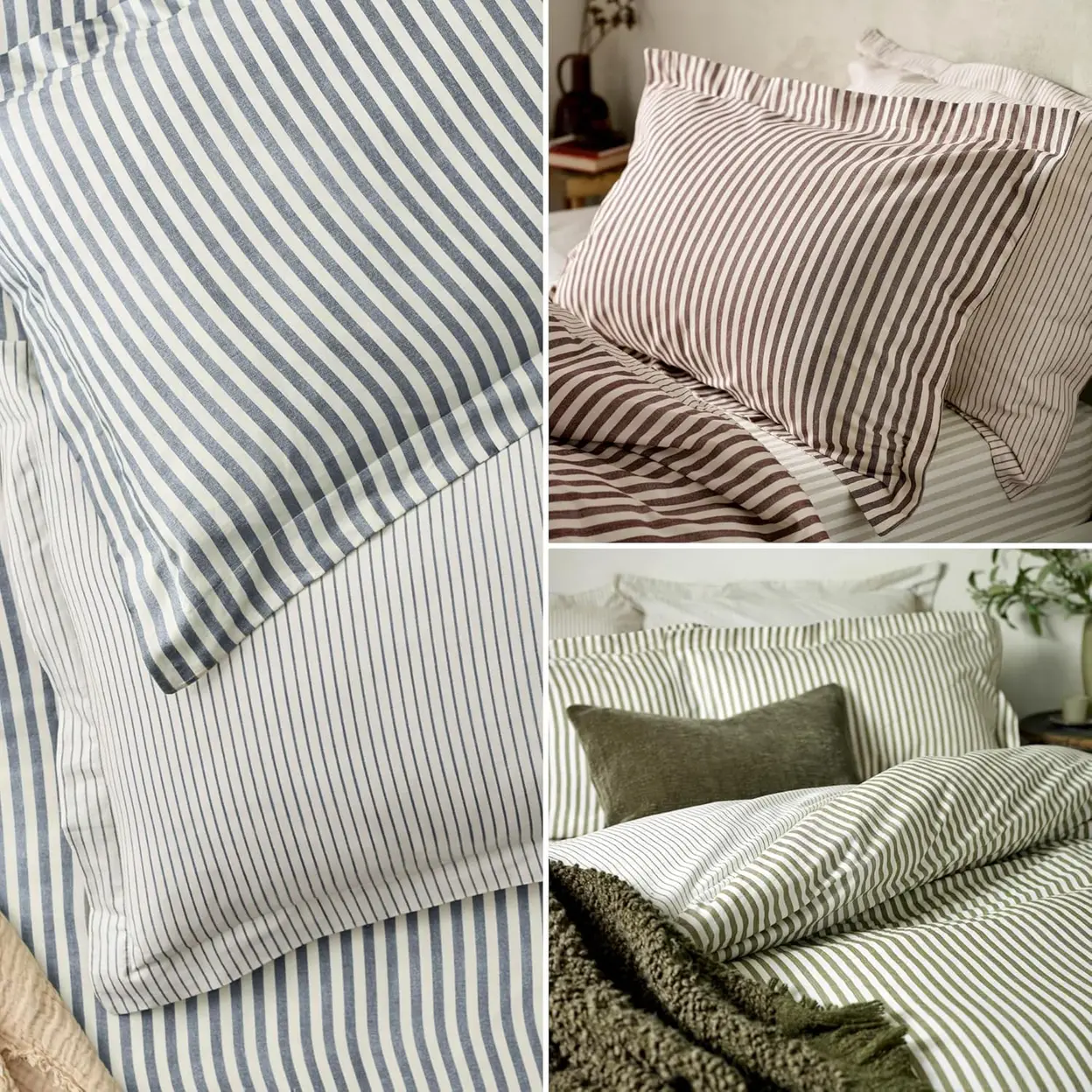 Yard Pillowcase Pair Hebden Stripe Reversible 100% Cotton Natural